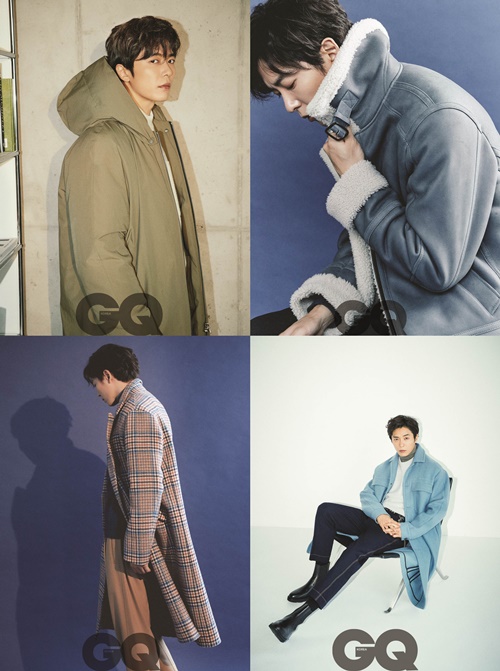 화보 속 김재욱은 톤 다운된 블루 컬러의 셔츠형 코트와 체크 핸드메이드 코트를 완벽하게 소화 해 내며 매니쉬하면서도 도시적인 분위기를 연출했다.