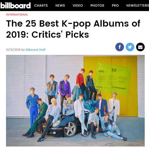 미국 음악 전문 매체 빌보드는 지난 31일(현지시각) 홈페이지를 통해 ‘The 25 Best K-pop Albums of 2019: Critics' Picks’ 기사를 게재, 비평가가 선정한 2019년 최고의 K팝 앨범 1위가 세븐틴의 ‘An Ode’라고 발표했다.