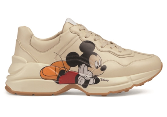 미니 GG 수프림 스몰 숄더백, 스몰 버킷 백 등 핸드백과 러기지, 가죽 소품에는 크고 작은 미키 마우스 패턴이 사용됐다. 특히 베이지 컬러의 플레인 레더 백 등 스몰 버킷 백 스타일은 정면 중앙에 위치한 커다란 미키 마우스 프린트가 돋보인다. 남녀 에이스 스니커즈와 라이튼 스니커즈 또한 미키 마우스 프린팅이 더해진 디자인으로 만나볼 수 있다.