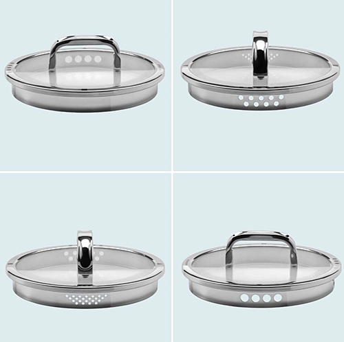 각기 다른 기능을 갖춘 ‘펑션4 어드밴스드’ 뚜껑을 살펴보면 첫 번째 구멍은 수분의 증발을 막아주어 저수분 요리에 적합하며 약간의 향료나 채소 향이 가득 배어나게 할 때 유용하다. 두 번째 구멍은 수분을 많이 증발시켜야 하는 감자나 국수 등을 삶거나 끓이고 난 후 물을 따라낼 때 편리하다. 세 번째 구멍은 수분을 약하게 증발시켜야 하는 곡류를 삶을 때나 채반 대신 내용물을 따라낼 경우 사용하기 좋고, 네 번째 구멍은 육류 요리하고 난 후 육수를 손쉽게 분리할 수 있다.