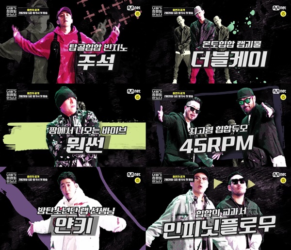 주석, 더블케이, 배치기, 원썬, 45RPM, 디기리·영풍(허니패밀리), 얀키, 비즈니즈·넉없샨(인피닛플로우) 까지 총 10팀의 래퍼들이 출연을 확정한 것.