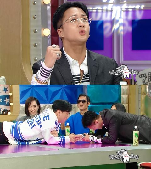 가수 라비가 ‘라디오스타’에 출연해 아이돌 중 GD에 이어 자작곡 수 2위에 올랐다고 밝힌다.