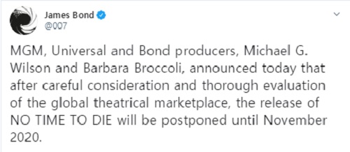 4월 국내외 개봉 예정이었던 ‘007 노 타임 투 다이’가 신종 코로나바이러스 감염증(코로나19) 확산 여파로 개봉일을 연기했다.