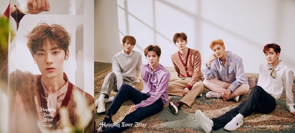 뉴이스트는 29일 오후 6시 미니 6집 'Happily Ever After(해필리 에버 애프터)'를 공개한다. 타이틀곡 'BET BET(벳벳)'은 JR(종현)과 백호가 작사, 작곡에 참여했다.