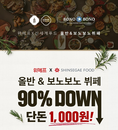 위메프가 신세계푸드에서 운영하는 ‘올반&보노보노’ 이용권을 최대 90% 할인한다.