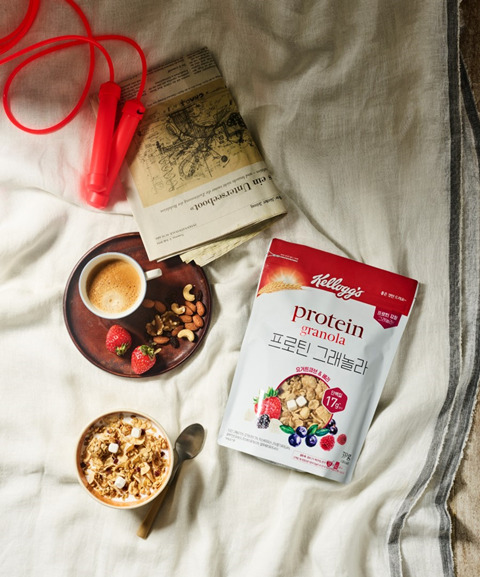 농심켈로그는 고소한 맛의 ‘미숫가루 큐브&검정약콩’과 상큼한 맛의 ‘요거트 큐브&베리’ 2종을 프로틴 그래놀라 제품으로 선보였다. ’미숫가루 큐브&검정약콩’은 식물성 콩 단백질이 강화된 특수 그래놀라에 100% 국내산 검정약콩과 동결건조공법의 미숫가루 큐브를 더해 만든 제품으로 입에서 부드럽게 녹는 미숫가루 큐브와 검정약콩의 달콤하고 고소한 맛을 느낄 수 있다.