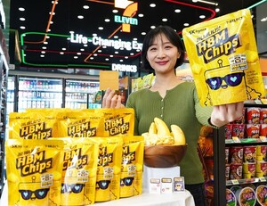 편의점 세븐일레븐은 글로벌 메모리 반도체 선두기업인 ‘SK하이닉스’와 손잡고 세계 1위의 기술력을 자랑하는 HBM(High Bandwith Memory) 반도체 칩을 스낵으로 재해석한 PB상품 ‘세븐셀렉트 허니바나나맛 HBM 칩’을 출시했다.양사는 SK하이닉스의 초고난도 기술을 갖춘 HBM칩을 스낵 상품화했다. HBM칩은 AI용 고대역폭 메모리 반도체로 2013년에 SK하이닉스가 세계 최초로 개발한 메모리 제품이다. 언어유희를 활용해 ‘허니 바나나 맛(HBM)’ 스낵칩 상품으로 선보였으며 기존에 없던 식감과 풍부한 맛을 구현하기 위