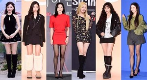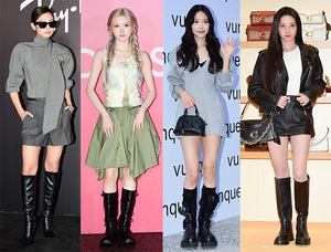 블랙핑크 제니, 아이브 가을, 손나은, 아이들 소연이 가을 부츠로 세련되면서 트렌디한 무드를 완성했다. 블랙핑크 제니는 그레이 블라우스와 쇼츠 셋업에 블랙 롱부츠를 매치해 시크함을 선사했고, 아이브 가을은 무릎 아래로 내려오는 짧은 길이의 블랙 부츠로 플로럴 패턴의 슬리브리스 톱에 밀리터리 카키 스커트를 매치한 스타일링으로 룩을 완성했다. 배우 손나은은 그레이 미니 원피스룩으로 무릎 아래의 짧은 길이의 부츠 핏은 청순한 분위기를 연출했고, 아이들 소연은 블랙 레더 재킷과 미니스커트의 경쾌한 조합에 블랙 롱부츠를 더해 가을 패션을 완
