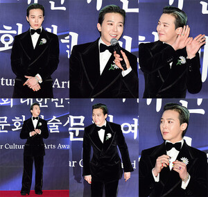 가수 지드래곤이 올해 최연소로 옥관문화훈장을 수훈했다.23일 서울 중구 국립극장 해오름극장에서는 문화체육관광부가 주최하고 한국콘텐츠진흥원이 주관하는 ‘2025 대한민국 대중문화예술상’ 시상식이 열렸다. 오는 31일 '2025 경주 APEC 정상회의' 홍보대사로 위촉됐으며, 지드래곤은 2016년 국무총리표창에 이어 K-팝을 세계적으로 확산하는 데 기여한 공로를 인정받아 옥관문화훈장을 받았다. 이날 지드래곤은 블랙벨벳 슈트룩에 화려한 네일아트와 반지까지 볼드한 액세서리를 맘껏 착용해 시선을 사로잡았다.