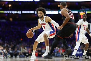 미국프로농구(NBA) 동부 콘퍼런스 선두 디트로이트 피스턴스가 쾌조의 6연승을 질주했다.디트로이트는 10일(한국시간) 미국 펜실베이니아주 필라델피아의 엑스피니티 모바일 아레나에서 열린 2025-2026 NBA 정규리그 원정 경기에서 필라델피아 세븐티식서스를 111-108로 꺾었다.동부 콘퍼런스 선두 디트로이트(8승 2패)는 상위권 다툼을 벌이던 필라델피아를 제압하고 6연승을 달렸다.필라델피아(6승 4패)는 3위에서 7위로 미끄러졌다.3점 차로 앞선 채 마지막 쿼터에 들어선 디트로이트는 필라델피아의 끈질긴 추격에 진땀을 뺐다.종료 4