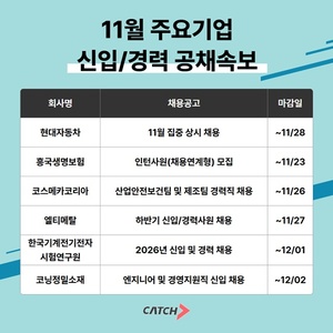 2025년 하반기 주요 기업의 신입·경력 채용이 본격적으로 시작됐다. 채용을 진행 중인 기업은 LF, 삼성웰스토리, SK하이닉스, DB생명보험, 에어퍼스트, 알파사이츠 등이다.LF는 11월 14일까지 ‘2025년 디자이너 체험형 인턴 채용’을 진행한다. 모집 부문은 디자이너로, 여성복, 남성복, 키즈, Acc 등 복종을 담당하게 된다. 자격 조건은 학사 이상인 자, 포트폴리오 제출이 가능한 자 등으로 자세한 내용은 공고를 참고해야 한다. 채용 절차는 △서류 전형 △인터뷰 전형 △인턴십(2개월) 순으로 이뤄진다.삼성웰스토리는 11월