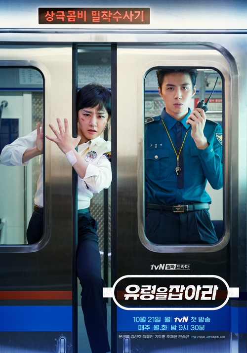 10월 21일 밤 9시 30분 첫 방송하는 tvN 새 월화드라마 ‘유령을 잡아라’(연출 신윤섭/극본 소원-이영주/제작 로고스필름/기획 스튜디오드래곤)는 ‘첫차부터 막차까지! 우리의 지하는 지상보다 숨 가쁘다!’ 시민들의 친숙한 이동 수단 지하철! 그 곳을 지키는 지하철 경찰대가 ‘유령’으로 불리는 연쇄살인마를 잡기 위해 사건을 해결해가는 상극콤비 밀착수사기.