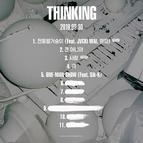 지코는 공식 SNS를 통해 데뷔 8년만의 첫 정규앨범 ‘THINKING’ Part.1 트랙리스트 이미지를 게재하며 컴백 열기를 고조시켰다. 공개된 트랙리스트에 따르면 이번 앨범에는 더블 타이틀곡 ‘천둥벌거숭이’와 ‘사람’을 비롯해 ‘걘 아니야’ ‘극’ ‘One-man show’ 등 총 5트랙이 수록됐다.