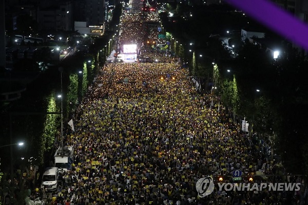 조국 법무부 장관 가족에 대한 검찰 수사가 진행 중인 가운데 28일 오후 서울 서초동 서울중앙지검 인근에서는 검찰 개혁을 촉구하고 조 장관을 지지하는 대규모 집회가 열렸다. 같은 시간대에 도로 바로 건너편에서는 소규모로 보수를 표방한 단체들이 조 장관 사퇴를 요구하는 집회를 개최했다.