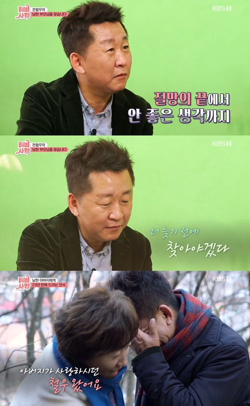 3일 방송된 KBS 1TV 'TV는 사랑을 싣고' 에서는 1세대 탈북 방송인 전철우가 게스트로 나와 남한 부모님을 찾았다.