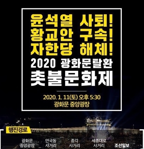 한편 광화문 촛불연대 측은 11일 첫 집회 이후 1월에는 설날 연휴로 잠시 쉬고 2월부터 광화문광장에서 매주 집회를 이어갈 것이라고 밝혔다.