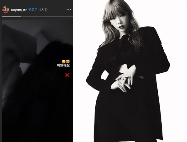 3일 태연은 자신의 인스타스토리에 "미안해요"라는 글과 함께 사진을 한 장 게재했다.