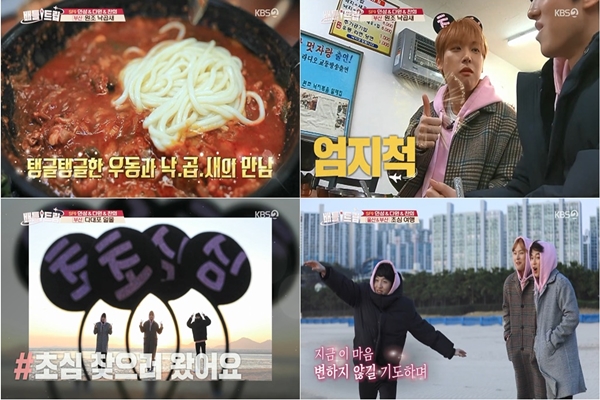 3일 방송된 KBS 2TV ‘배틀트립’에는 SF9 인성-다원-찬희가 여행 설계자로, 같은 팀 멤버인 로운이 특별 게스트로 출연했다. 새해를 맞아 울산과 부산으로 초심을 찾아 떠난 SF9 인성-다원-찬희의 초심 여행기가 공개돼 이목을 집중시켰다.