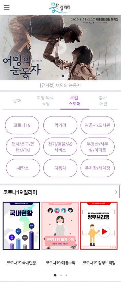 최근 코로나19가 전국으로 확산되면서 이와 관련된 주요 정보를 얻을 수 있는 앱이 증가하고 있다. 문화알리미앱도 관련 서비스를 시작했다.
