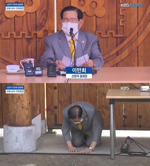 이만희 신천지예수교 증거장막성전(신천지) 총회장이 신종 코로나바이러스 감염증(코로나19) 사태에 대해 국민 앞에 무릎을 꿇었다.