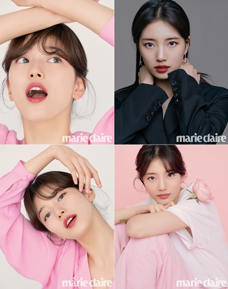글로벌 코스메틱 브랜드 랑콤의 뮤즈인 수지는 마리끌레르 3월호 화보를 통해 한층 물오른 아름다움을 뽐냈다. 블랙톤 헤어컬러와 수트, 실버 액서서리로 도시적이고 시크한 매력을 과시하다가 사랑스러운 컬링 헤어와 핑크와 화이트톤 의상으로 소녀스러우면서도 장난기 가득한 표정을 연출하는 등 팔색조 매력을 드러냈다.