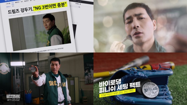하도권은 자신만만했던 처음과 달리 여러 번 테이크가 진행되는 동안 긴 제품명에 난처해하는가 하면, 제품을 거꾸로 드는 등 NG를 연발해 웃음을 자아냈다. 특히 극중에서 우직한 성격으로 뷰티와는 거리가 멀어보이던 강두기의 이같은 모습이 과몰입 드라마 ‘스토브리그’ 드림즈 팬들의 팬심을 자극했다.