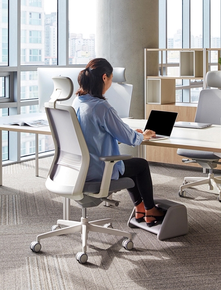 습관적으로 다리를 꼬는 등 허리, 골반 통증을 유발하는 잘못된 자세로 앉거나 작은 체구 때문에 발이 바닥에 닿지 않아 불편한 이들이 반색할 제품이 등장했다. 의자 전문 브랜드 시디즈가 현대인의 바른 자세 유지를 돕기 위한 ‘2단 발받침’을 출시했다.