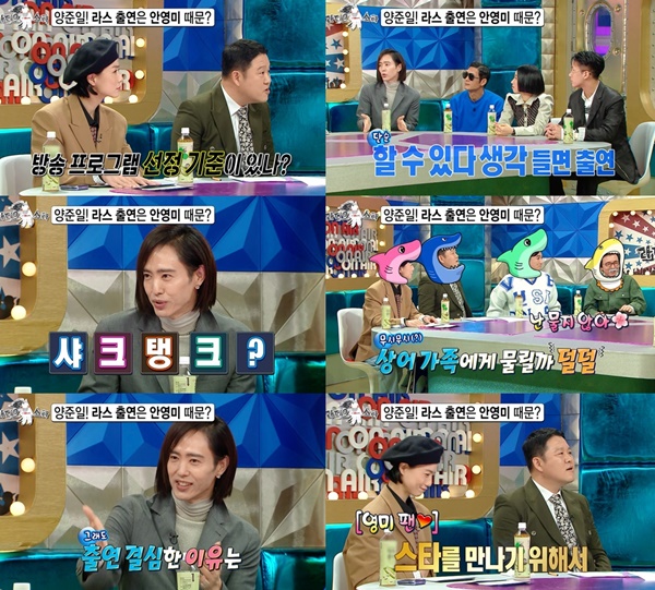 과거 인터뷰에서부터 양준일을 언급했던 안영미는 "피디님한테도 조르고 그랬어요"라며 양준일에 대한 열렬한 팬심을 드러냈다. 특히 과거 양준일 패션을 완벽 재현해 시선을 끌기도 했다. 양준일 역시 "기사로 봤다. 그래서 저는 (안영미) 만나 뵙고 싶어서 '라스' 나왔다"라며 출연 이유를 털어놔 안영미를 감격케 했다.
