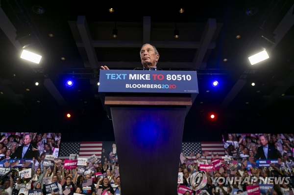 지난해 11월 뒤늦게 출마 선언한 블룸버그는 막강한 재력과 바이든의 초반 부진으로 중도파 대안으로 급부상했다. 그는 초반 경선을 건너뛰고 ‘슈퍼 화요일’에 집중한다는 전략을 세웠지만 실패로 돌아갔다.