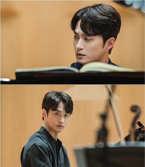 김성규는 이번 작품에서 슬럼프에 빠진 클래식 피아니스트 ‘강인욱’ 역을 맡았다. 이날 공개된 김성규의 첫 촬영 스틸에는 피아노 앞에 앉아있는 그의 모습이 담겼다. 웃음기 없는 표정과 눈빛만으로 무대 위의 분위기를 단숨에 압도한 김성규. 스틸을 뚫고 나오는 듯한 그의 강렬한 눈빛이 숨멎을 유발한다.