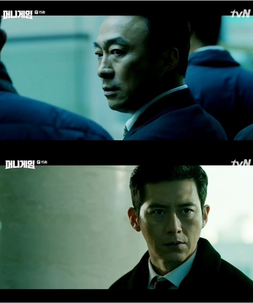 굴욕적으로 수갑을 찬 채 연행되어가는 허재와 그 모습을 멀리서 지켜보는 채이헌과 유진한, 세 사람의 눈빛이 교차되며 극이 종료돼 폭발적인 여운을 자아냈다. 이에 권력의 정점에서 곤두박질 친 허재의 최후가 어떻게 그려질지 또한 아직 끝나지 않은 채이헌과 유진한의 게임이 누구의 승리로 결론 날 지 그리고 이혜준과 한국 경제의 미래는 어떻게 그려질지, 최종화만을 남겨둔 ‘머니게임’의 결말에 궁금증이 수직 상승한다.