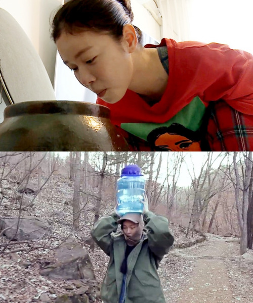 한참을 올라가던 경수진은 자신에게 닥쳐올 무자비한 앞날은 생각하지 못한 채 한 발 한 발 걸음을 내딛는다. 자신감 넘치는 모습도 잠시, 무겁게 채운 약수통을 껴안고 힘겹게 산에서 내려오다 돌연 현타(현실 자각 타임)가 온 듯한 모습은 안타까움이 절절하게 묻어났을 정도라고.