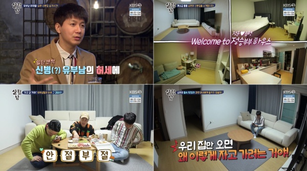 변기수는 갑작스레 김승현에게 집들이를 제안했다. 이에 김승현이 자신 있게 “가면 되죠”라며 앞장을 섰다. 김승현의 집에 들어선 변기수와 윤형빈은 호기심 가득한 눈빛으로 집안 곳곳을 둘러봤다.