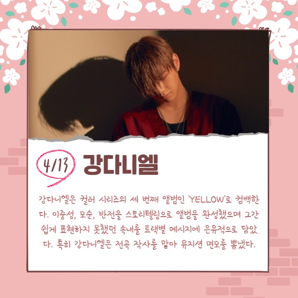 강다니엘은 컬러 시리즈의 세 번째 앨범인 'YELLOW'로 컴백한다. 이중성, 모순, 반전을 스토리텔링으로 앨범을 완성했으며 그간 쉽게 표현하지 못했던 속내를 트랙별 메시지에 은유적으로 담았다. 특히 강다니엘은 전곡 작사를 맡아 뮤지션 면모를 뽐냈다.