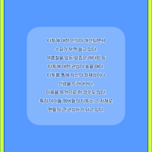여름철을 앞둔 요즘은 레터링 등 타투에 대한 관심이 높을 때다.