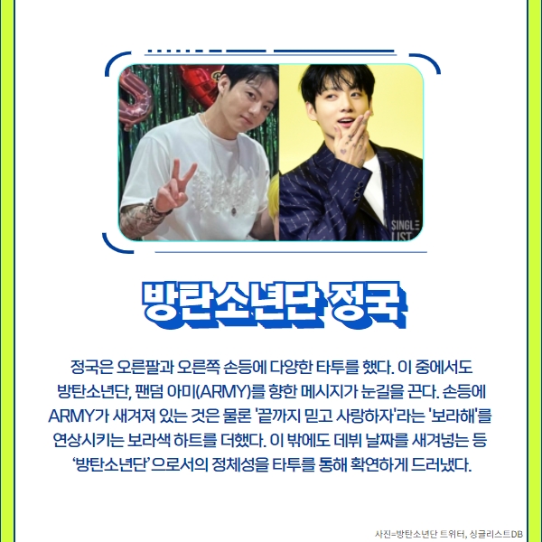 특히 아이돌 멤버들의 타투는 그 자체로 팬들의 큰 관심사가 되고 있다.