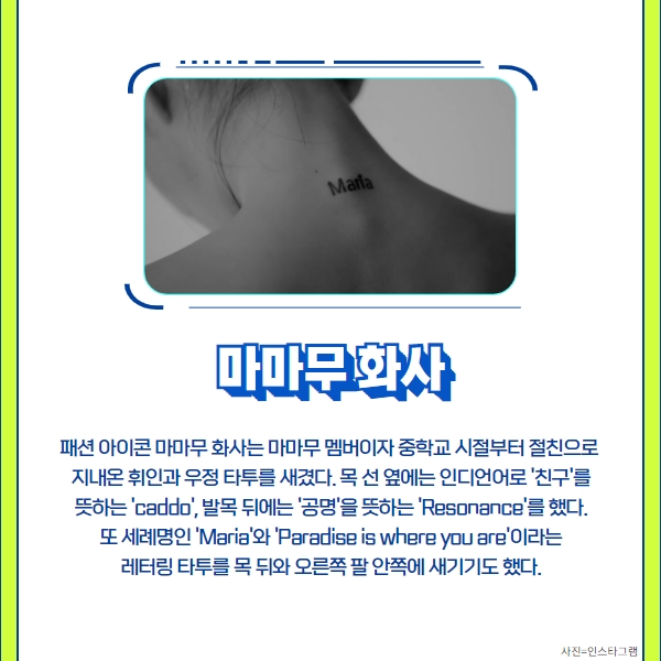 꽤 큰 사이즈의 타투로 어깨 뒷부분에 새겼다.