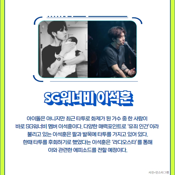 아이돌은 아니지만 최근 타투로 화제가 된 가수 중 한 사람이