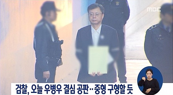 결심 공판 내내 무표정이던 그는 검찰이 징역 8년의 중형을 구형하자 살짝 씁쓸한 미소를 내비쳤다. 최후진술에서는 미리 준비한 A4용지 4∼5장 분량의 글을 덤덤하게 읽어내려 갔다. 우 전 수석에 대한 선고는 다음달 14일 내려진다.