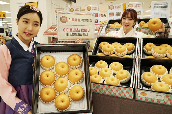 올해 큰 과일 출하량이 늘면서 사과와 배 값이 저렴해, 1만원대 과일 선물세트가 등장하면서 실속파들의 눈길을 끈다. 이마트가 선보인 ‘최초의 1만원대 배 선물세트(1만9천원)’는 기존 배 선물세트 대비 용량을 줄인 5kg 선물세트로, 1~2인 가구의 소비에 맞췄다.