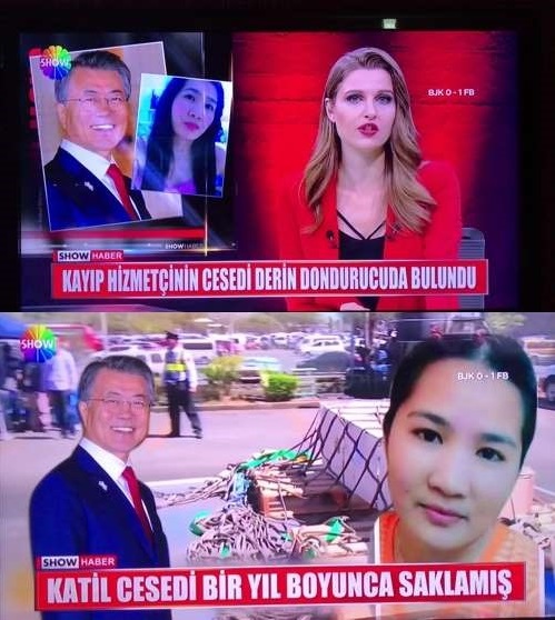 연합뉴스에 따르면 지난달 25일 터키의 인기 오락채널인 쇼TV 뉴스 프로그램 '아나 하베르'(주요 뉴스)에서 문 대통령의 사진이 필리핀 출신 가사도우미 살인 용의자 모습으로 보도됐다.