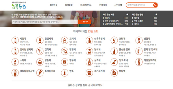 환경부가 시중에서 판매중인 생활화학 제품 중 안전기준을 위반한 제품을 ‘초록누리’ 사이트를 통해 공개했다. 하지만 의도와는 달리 불편함이 잇달아 개선이 필요하다는 지적이 잇따르고 있다.