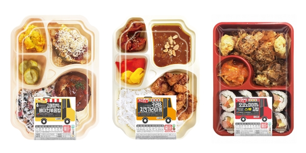 이번에 선보이는 도시락 시리즈는 CJ제일제당 셰프팀과 공동 개발한 상품으로 '고메함박&베이컨볶음밥'과 '카레&치킨가라아게', '오코노미야끼&스팸김밥' 등 총 3종이며, 가격은 각 4300원이다.