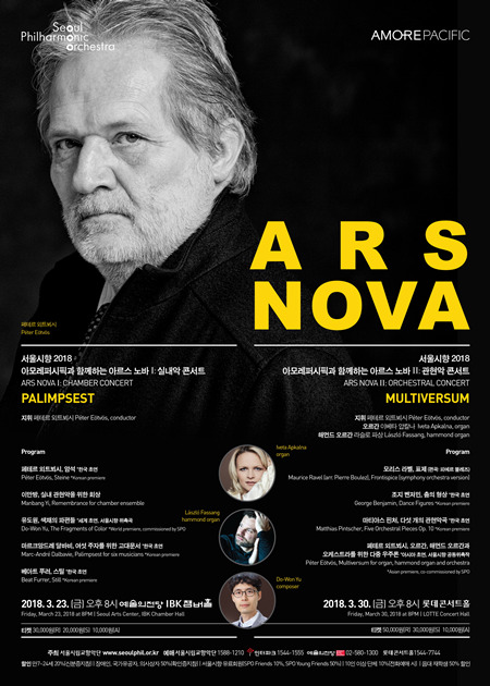 대미를 장식할 작품은 페테르 외트뵈시의 신작 오르간과 해먼드 오르간을 위한 ‘다중 우주론’으로 아시아 초연된다. 작곡가인 외트뵈시가 직접 지휘를 맡고 이 작품을 초연한 이베타 압칼나와 라슬로 파상이 오르간과 해먼드 오르간을 각각 협연해 기대를 모은다.
