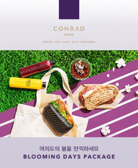 여의나루와도 가까운 콘래드 서울에서는 ‘블루밍 데이즈 패키지’로 나들이 하기 좋은 계절을 맞이했다. 여의도 공원과 탁 트인 한강을 조망하는 객실에서의 1박과 조식 뷔페, 여의도 공원 또는 한강공원에서 간편하게 피크닉을 즐길 수 있는 피크닉 세트를 제공한다. 피크닉 세트에는 카페 10G의 고메 샌드위치와 음료, 자체 제작한 피크닉 백과 매트가 포함되어 있어 별도의 준비 없이 간편하게 봄나들이를 즐길 수 있다. 4월 30일까지. 28만 7000원 부터(세금별도)