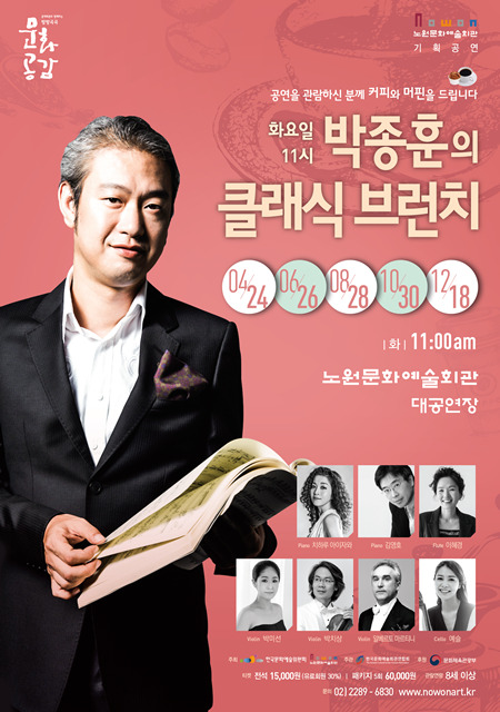 각 지자체에서 지역 주민들의 문화욕구를 충족시켜주려는 움직임을 보이는 가운데 노원문화예술회관 대공연장에서 4월부터 12월까지 짝수 달 마지막 주 화요일마다(4월24일, 6월26일, 8월28일, 10월30일, 12월18일) 총 5회에 걸쳐 ‘박종훈의 클래식 브런치’를 진행한다.