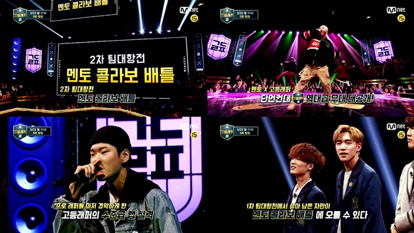 ‘고등래퍼2’ 제작진은 “2차 팀 대항전 ’멘토 콜라보 배틀’에서 단언컨대 ‘고등래퍼2’ 사상 역대급 무대가 공개될 예정”이라며 “열광과 흥분의 도가니였던 현장의 분위기를 시청자 분들도 함께 느끼실 수 있을 것”이라고 전했다. 또 “이에 앞서 1차 팀 대항전에서는 몇 명의 탈락자가 발생할지, 그들이 누가 될지도 함께 지켜봐 달라”고 밝혔다.