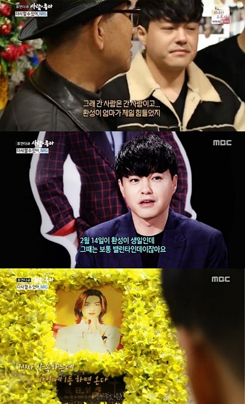세 남자는 18년이 흘렀지만 영원히 NRG의 마음 속에 함께하고 있는 멤버 고 김환성의 납골당을 찾았다. 이성진은 "우여곡절 끝에 나왔다. 너가 도와준 것 같다"라며 눈물을 훔쳤다. 천명훈은 "환성이는 미소 짓고 예뻤던 모습 그대로 기억하고 있다"고, 노유민은 "매년 2월14일은 밸런타인데이가 아니다. 내겐 환성이 생일이다. 더욱 그립다"며 울먹였다.