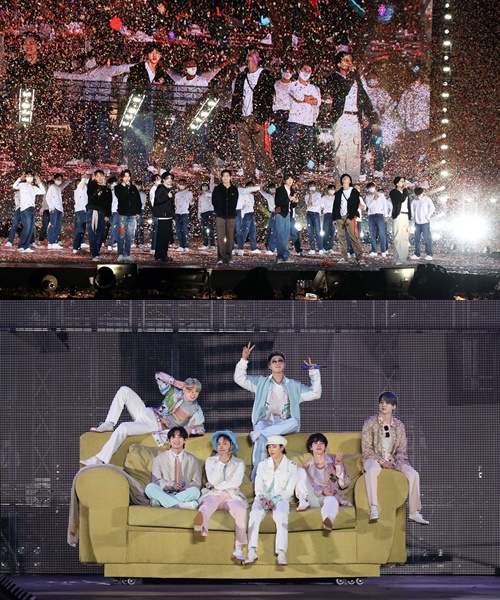 방탄소년단은 이날 콘서트에서 약 150분 동안 'ON', '불타오르네', '쩔어', 'DNA'를 비롯해 '피 땀 눈물', 'Life Goes On', 'Dynamite', 'IDOL', 'Permission to Dance' 등 총 24곡을 열창했다.