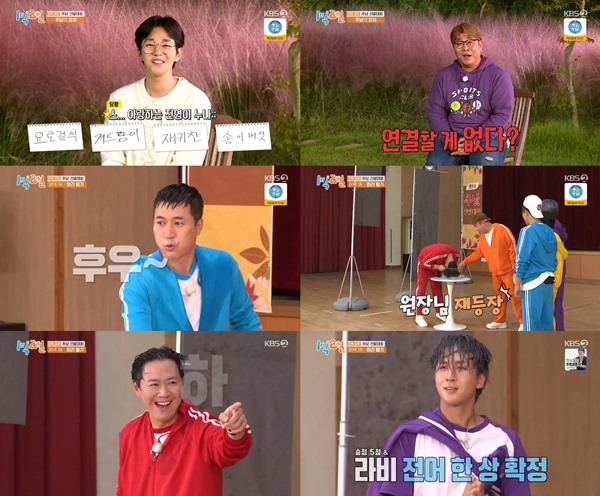 각 대결에서 승리한 김종민, 문세윤, 라비는 제철 음식인 전어 한상차림과 민물 새우탕으로 알찬 식사를 즐겼다. 특히 라비는 문세윤의 ‘먹제자’답게 그의 모습을 따라 푸짐한 전어회 ‘왕 쌈’을 입에 넣으며 풍족한 재미를 선사했다.